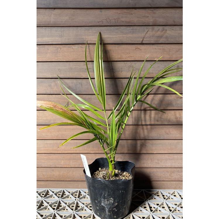 流通量が少なく、珍しいヤシの木。アレカヤシと比べると葉が厚く、やや深い緑色をしています。耐陰性と耐寒性が高いため室内で育てることができます。
